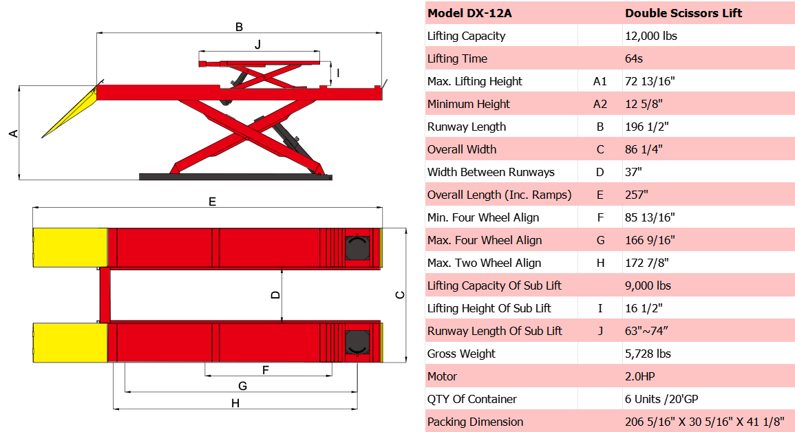 • 12,000lbs capacity for main scissor lift and 9,000lbs capacity for secondary scissor lift