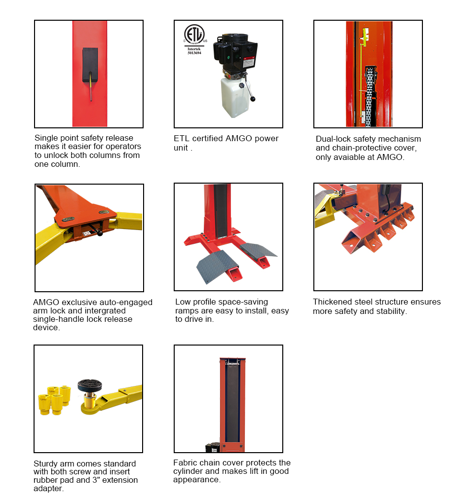 AMGO’s newly designed single post lift is the perfect choice when you must quickly lift a vehicle in limited space.The SL-7 is one of the least space-consuming, permanently affixed lifts in the world and can be used in commercial service shops, home garages, or any area where space is at a premium and durability is a must.